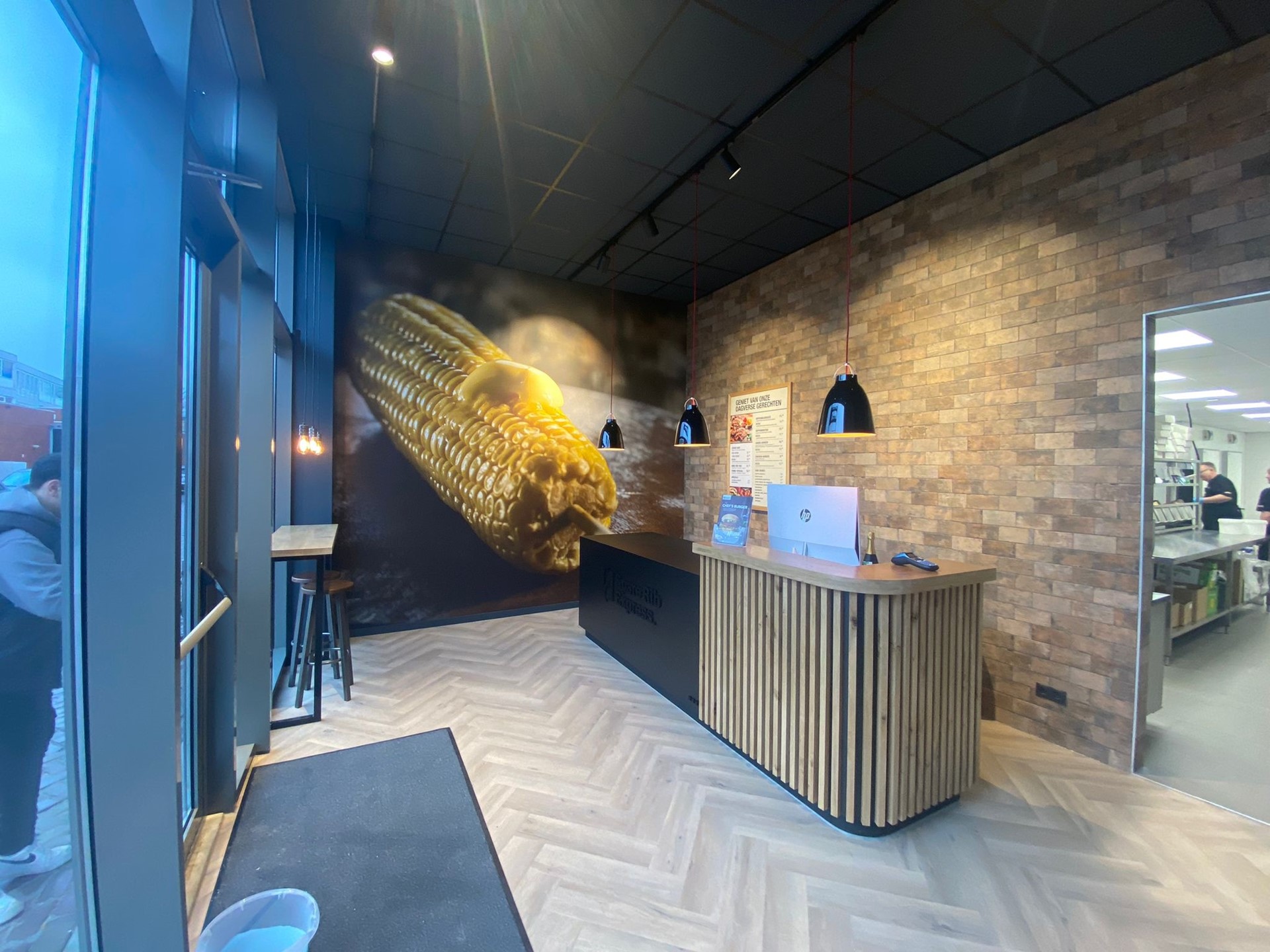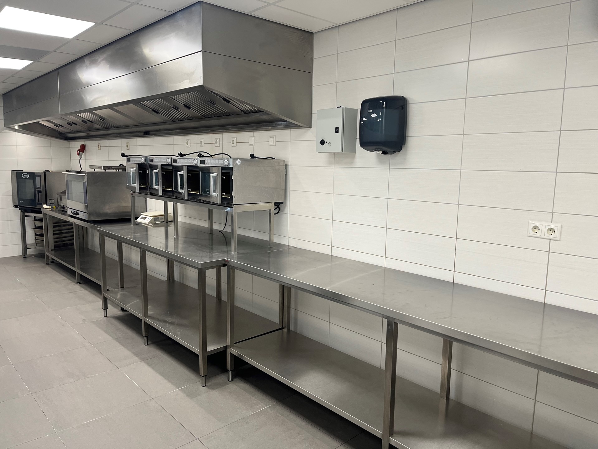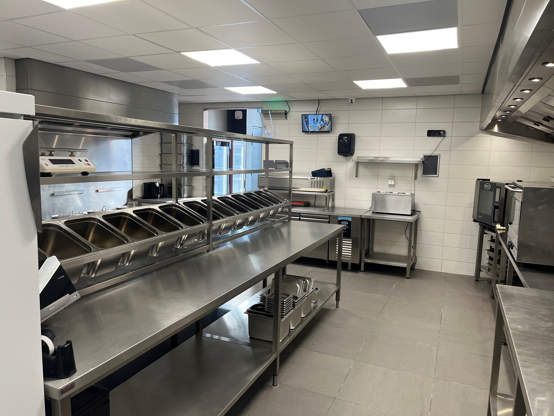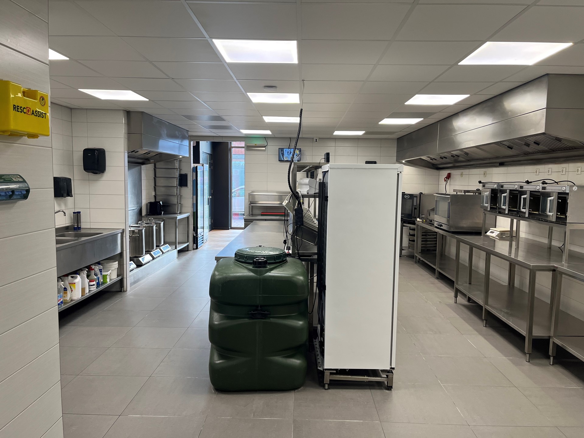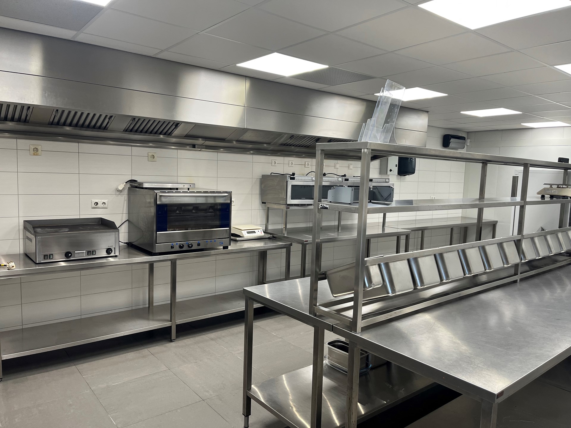 De ruimte is momenteel ingericht voor afhaal en bezorgactiviteiten en beschikt over onder meer: