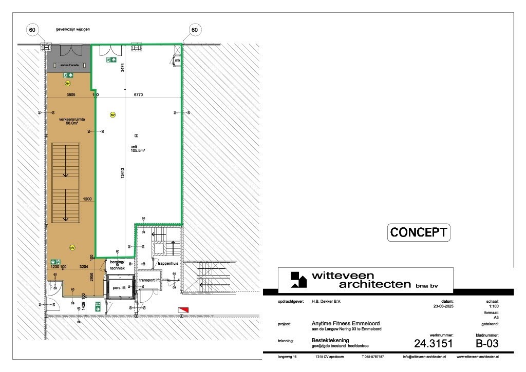 De ruimte bestaat uit circa 100 m² op de begane grond en een royale verdieping van ca. 400 m², bereikbaar via trap, lift en goederenlift. Aan de achterzijde is tevens een laad- en losmogelijkheid aanwezig. Binnenkort opent direct naast deze locatie een 24-uurs sportschoolconcept, waarmee samenwerking of functiecombinatie (bijv. fysiotherapie of maatschappelijke dienstverlening) mogelijk is.