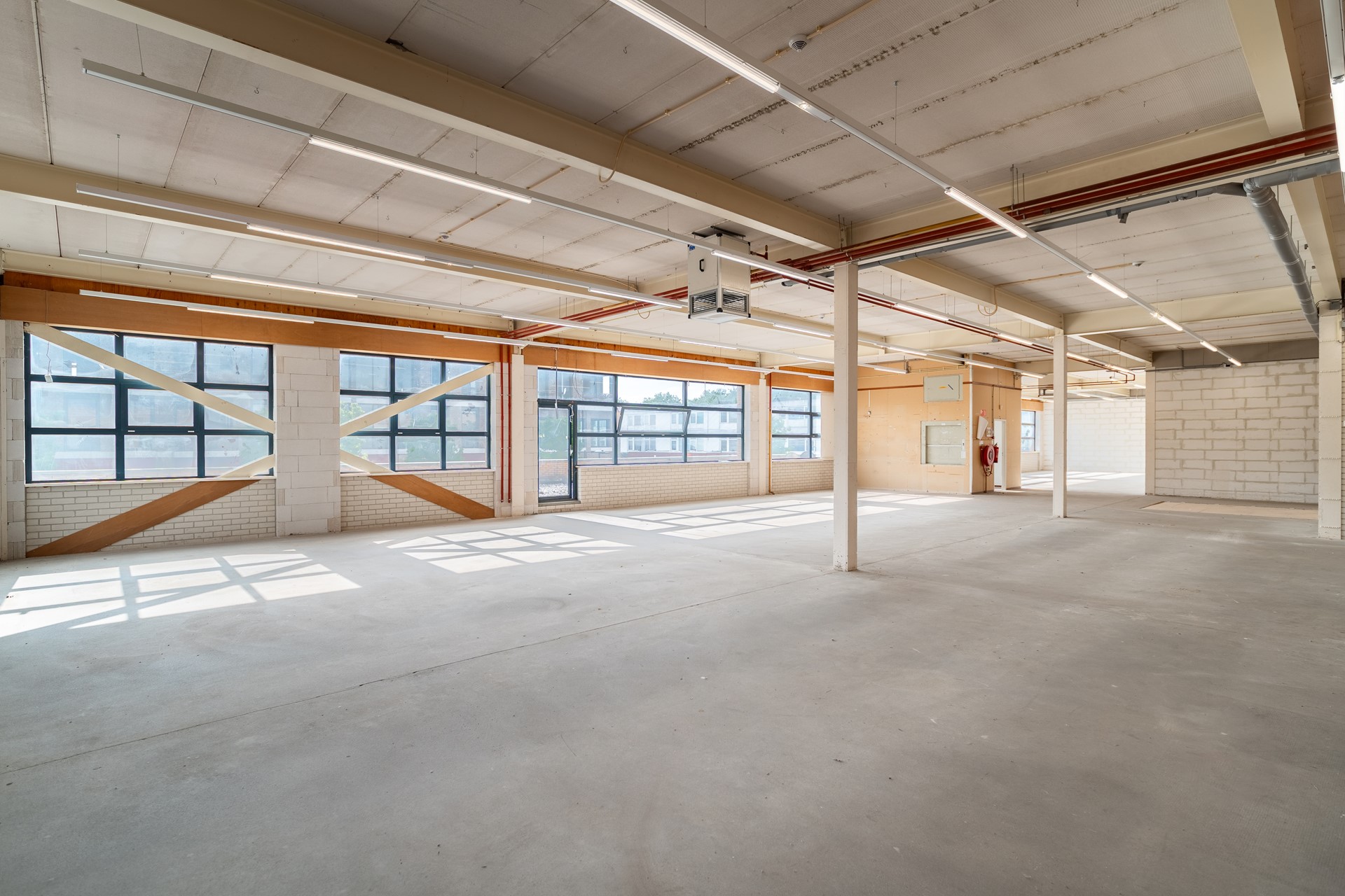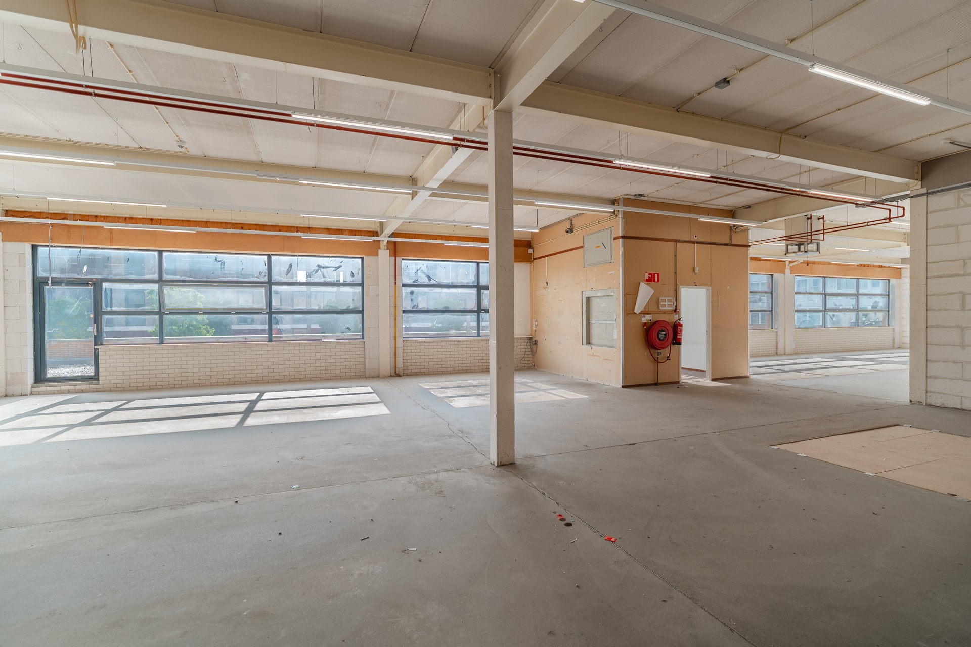 • Verdieping: ca. 400 m² gebruiksoppervlak, voorzien van toiletruimte, keukenblok, een grote open ruimte en een separaat kantoor. Bereikbaar met lift en goederenlift. Naar wens aan te passen of in te delen. Hier is tevens een groot dakterras (met kiezels).