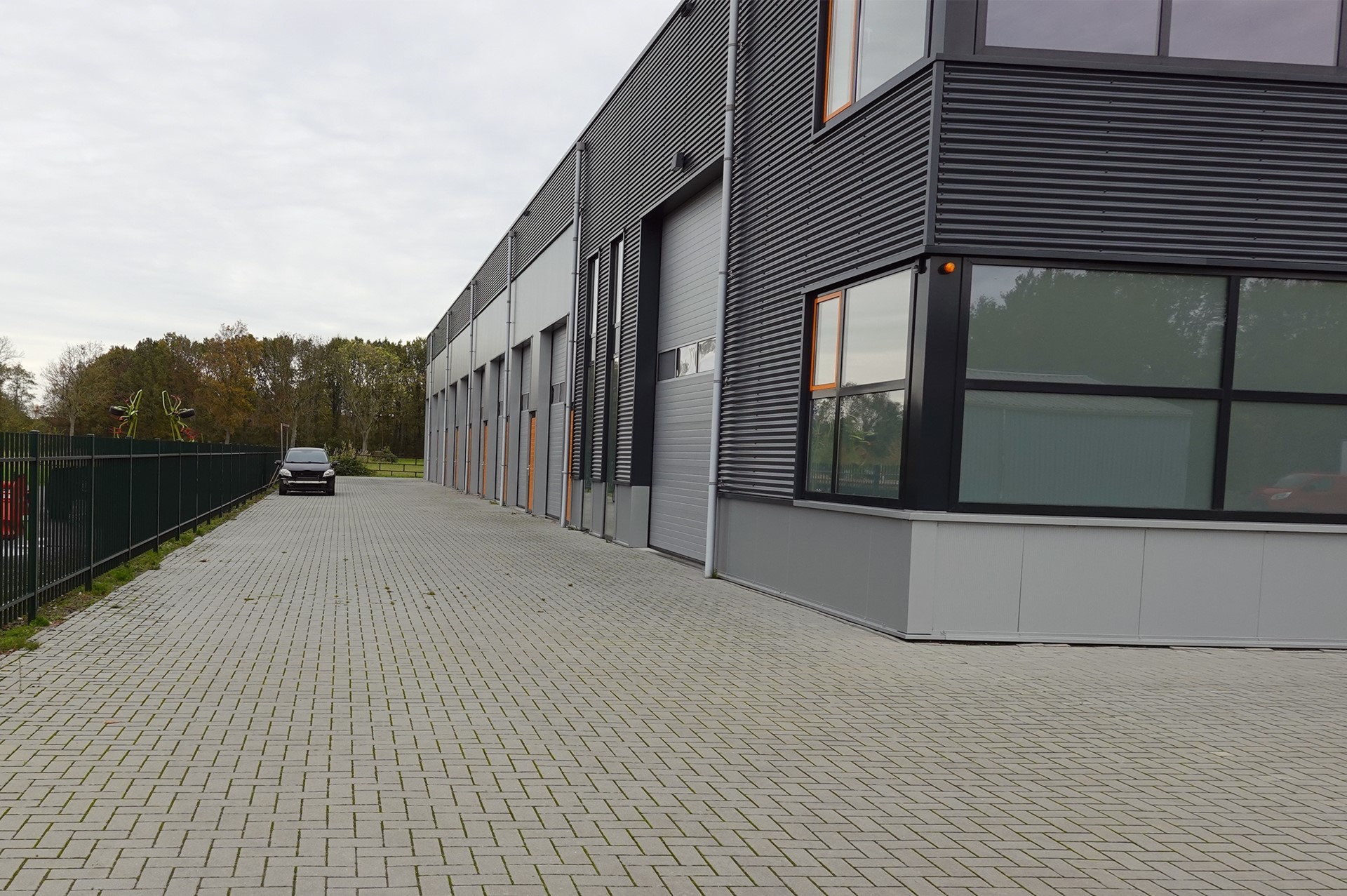 Het mandelige buitenterrein is verhard met klinkers en biedt voldoende parkeergelegenheid.