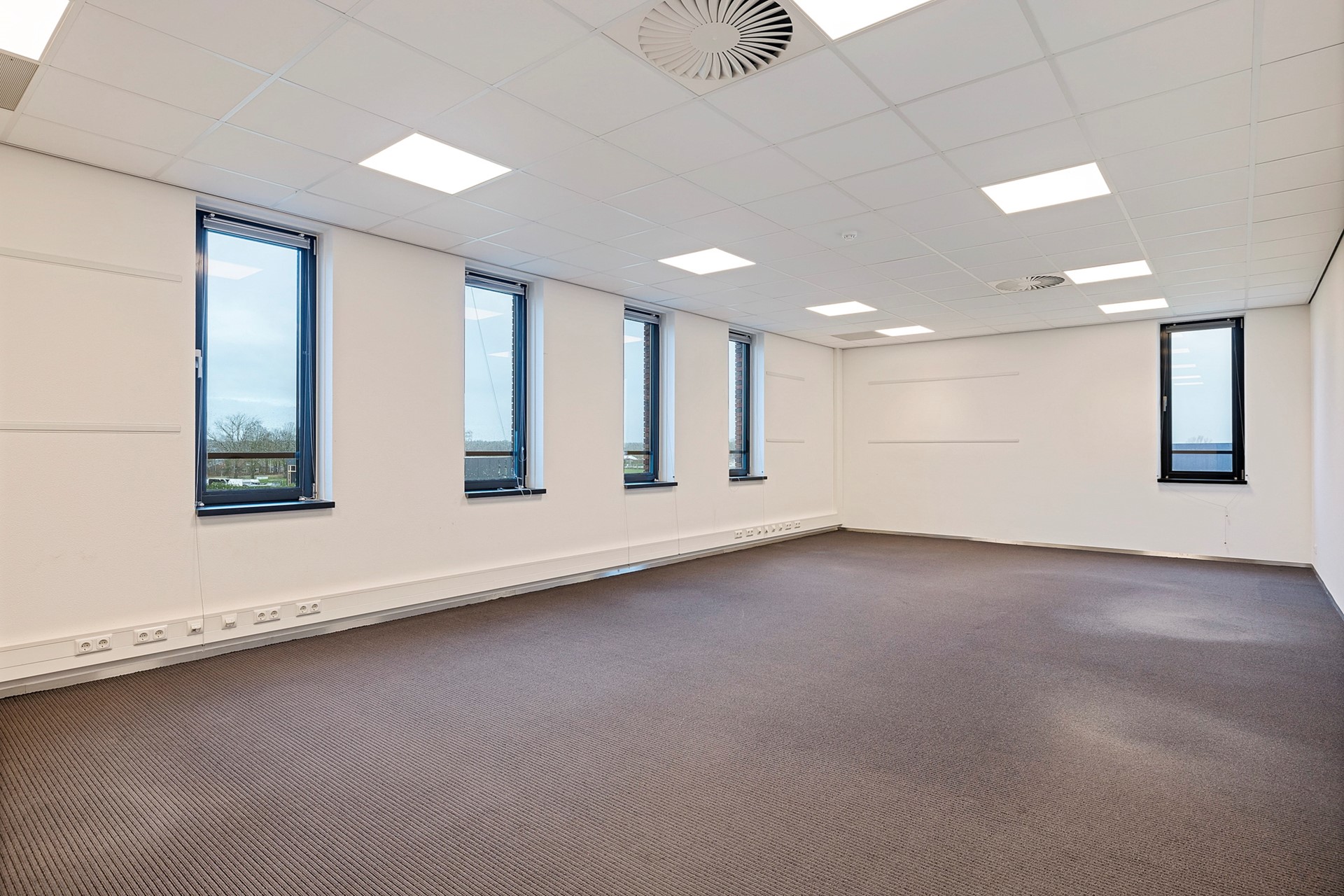 Indien er geen behoefte is aan een dergelijke grote vergaderruimte is het uiteraard ook mogelijk om dat deel als een zgn. kantoortuin in te zetten. De bergingen zijn ook om te zetten naar meer kantoorruimte.