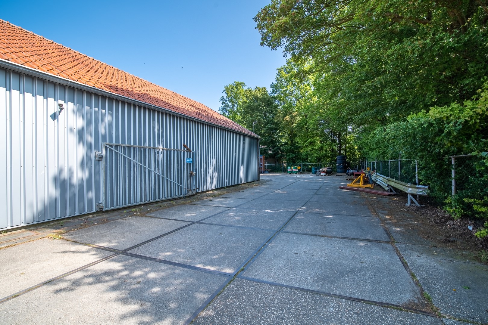 Bij dit bedrijfscomplex is veel verhard buitenterrein aanwezig, aan de voor,- en achterzijde van de diverse panden. Er is voldoende parkeermogelijkheid voor personenauto’s, manoeuvreer- en opstelruimte voor vrachtverkeer, buitenopslag en uitbreidingsmogelijkheden. Diverse hekwerken en een afsluitbare poort.