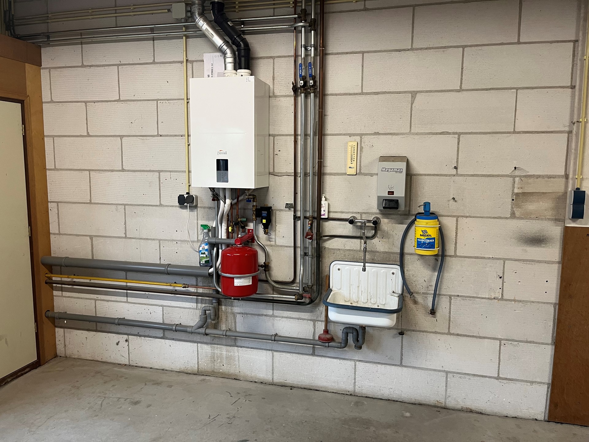 • Vloerverwarming in kantoren begane grond, overige ruimtes via radiatoren