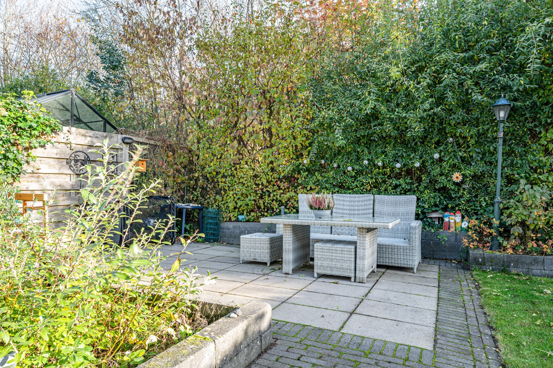 De achtertuin is een oase van rust met volop privacy door de groene erfafscheiding. Een fijne plek om te ontspannen, te tuinieren of te genieten van lange zomeravonden. De zon komt op in de tuin en gaat 's avonds ook weer onder in de tuin. Voorzien van een extra berging, 2 stroompunten, een buitenkraan en tuinverlichting, is het hier goed toeven.
