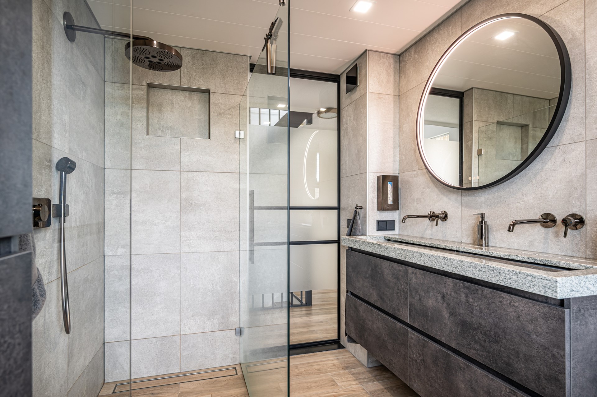 • riante inloopdouche met inbouwkranen en drain