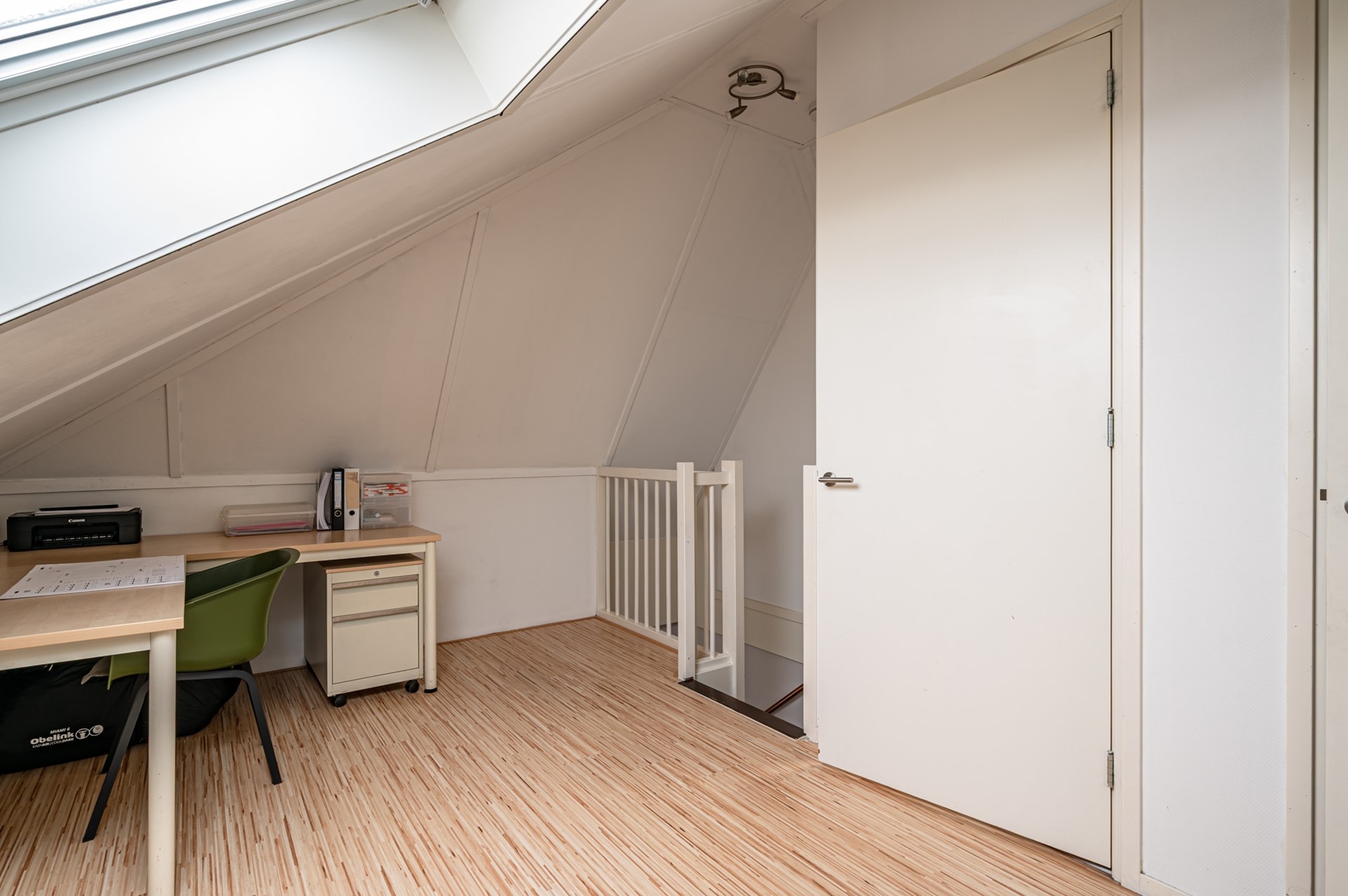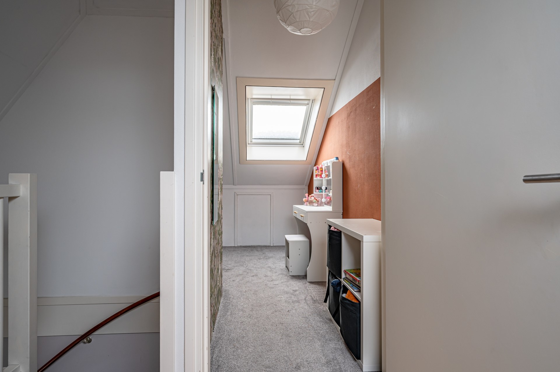 • Vaste trap naar royale overloop met laminaatvloer, groot dakraam en toegang tot de vierde slaapkamer met dakraam natuurlijke lichtinval. Verder een aparte technische ruimte welke is v.v. wasmachine aansluiting, cv ketel (Intergas 2016), omvormer van de zonnepanelen en unit van de mechanische ventilatie.